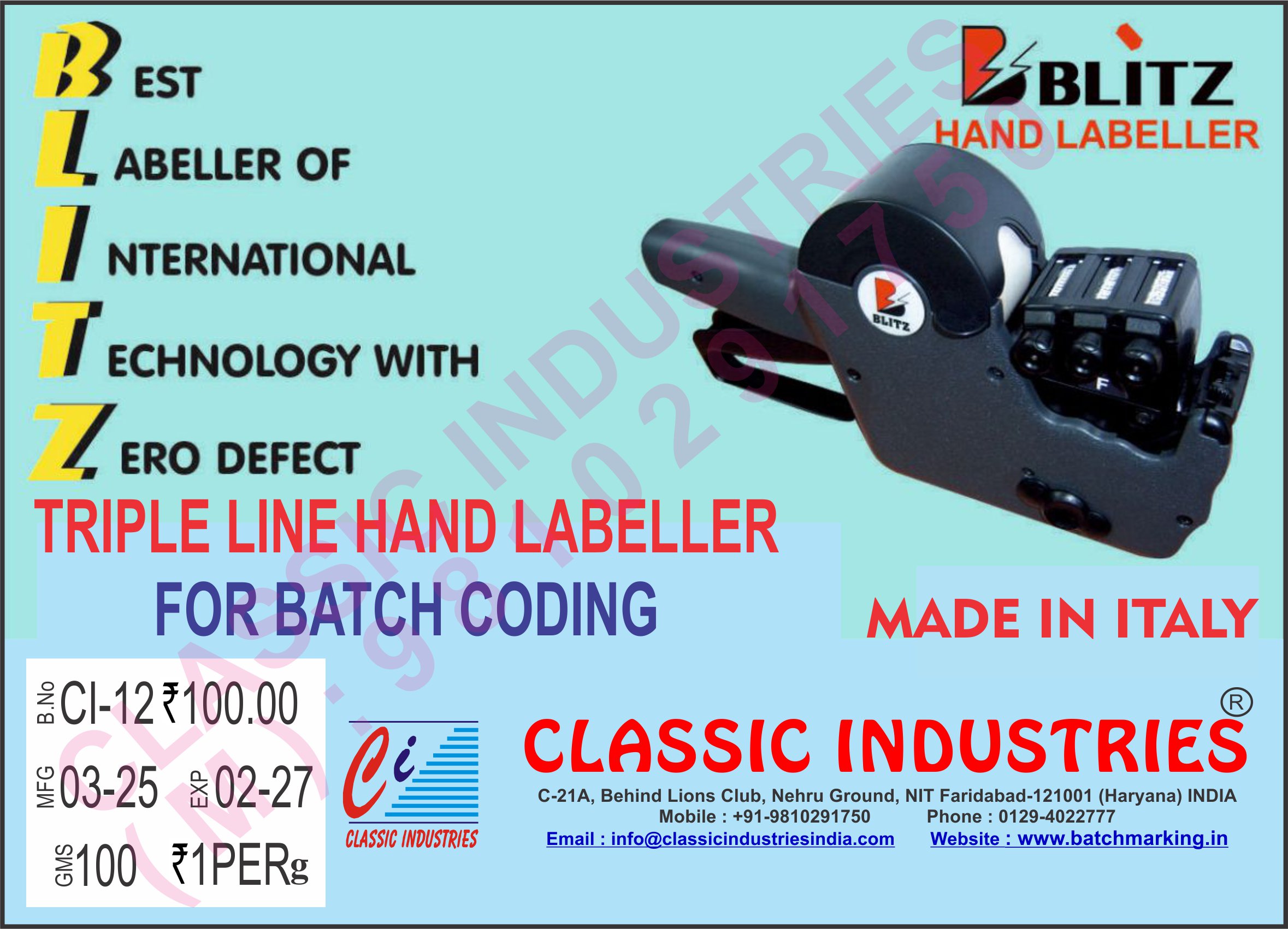 We are Stockiest of Blitz & Open Labelling Machine (Single Line, Two Line, Three Line and Sequential Numbering Labelling Machine.
